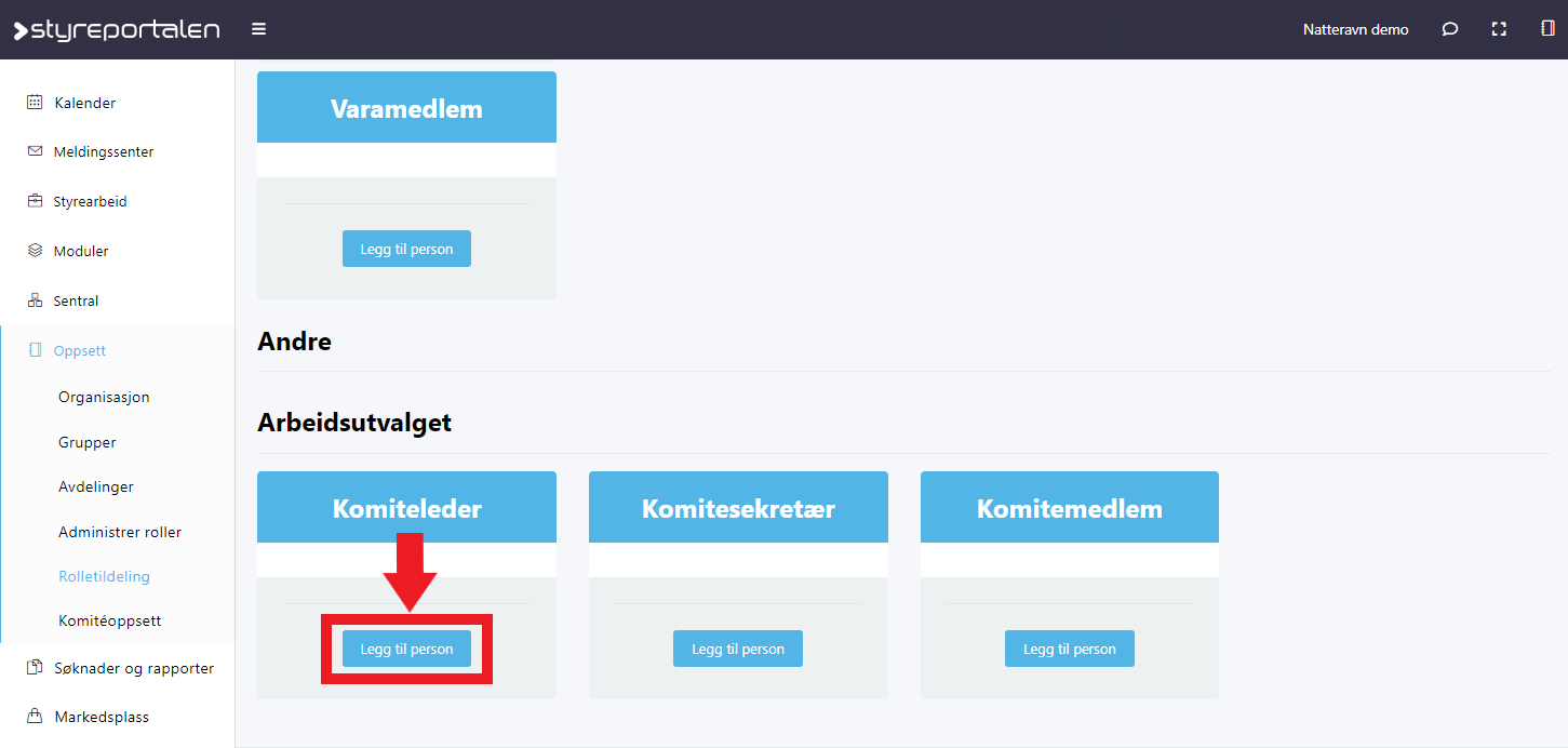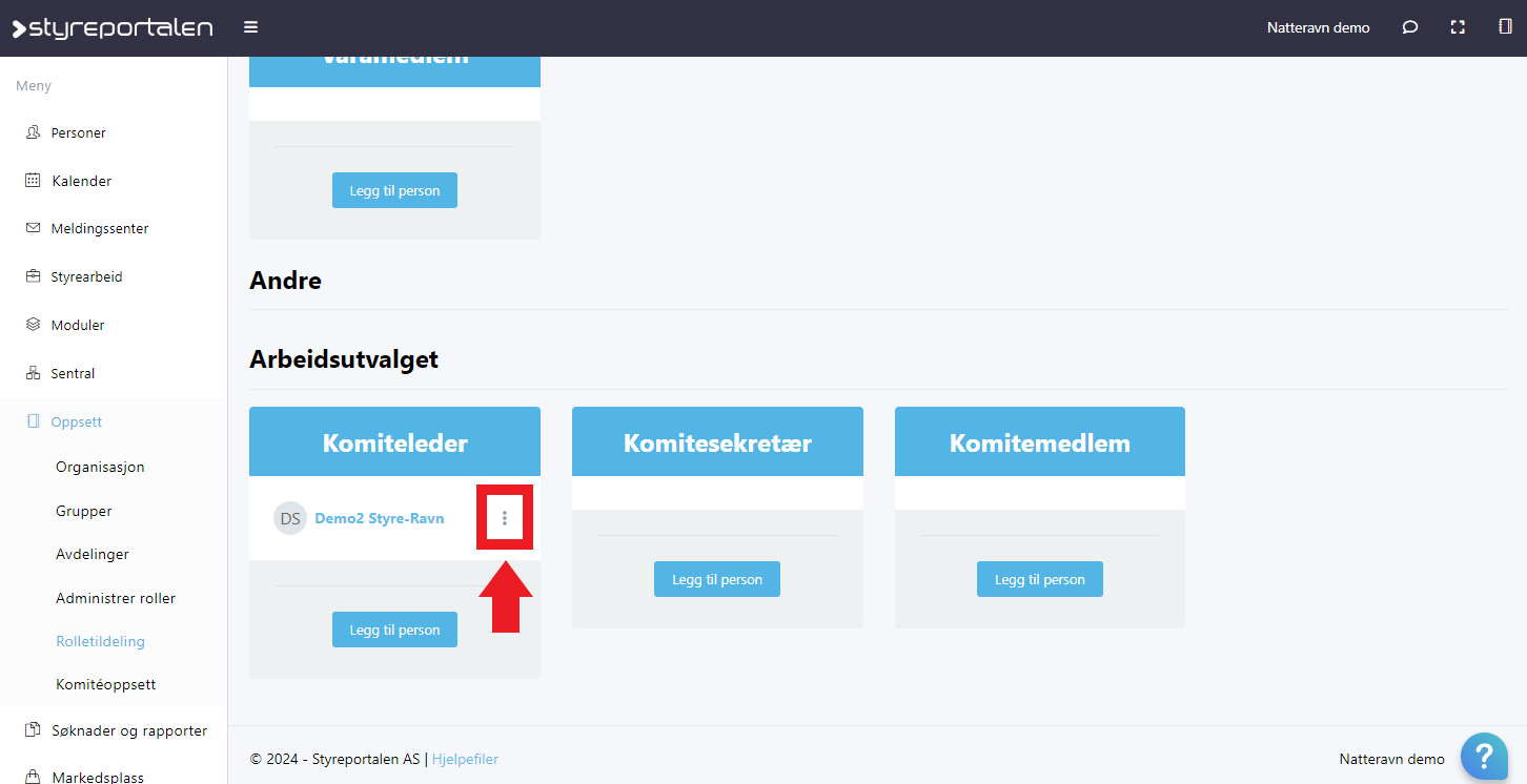 Du kan se og redigere hvem som er i disse rollene under "Oppsett --> Rolletildeling".